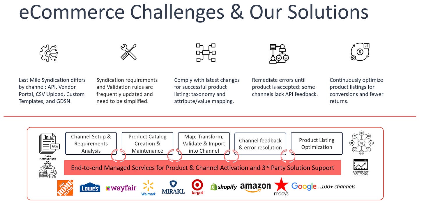 ML team can help customers from all the way from building a catalog (by aggregating data from sources, scrapping from web..) to then syndicate to different channels.